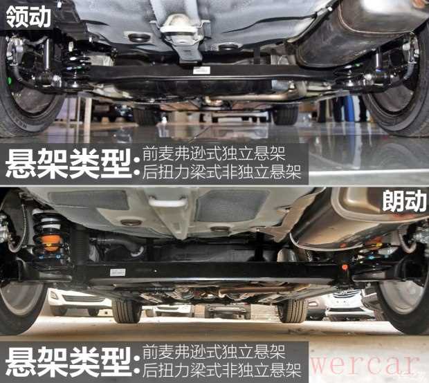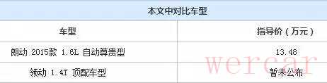 参与本次对比的分别是朗动 2015款 1.6L 自动尊贵型(官方指导价13.48万)和领动的顶配车型(3月初上市,目前售价暂未公布),前者搭载1.6L自然吸气发动机和6速手自一体变速箱,后者搭载1.4T涡轮增压发动机以及7速双离合变速箱。