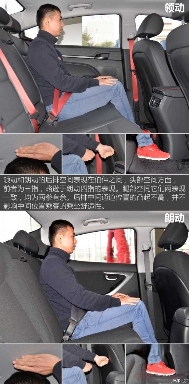 至于后排座椅的表现,领动配备了三根三点式安全带,后排中间位置配有可调节头枕,配置高于朗动。