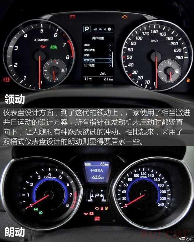 领动全新设计的仪表盘运动风格十足,朗动则明显偏家居风格。