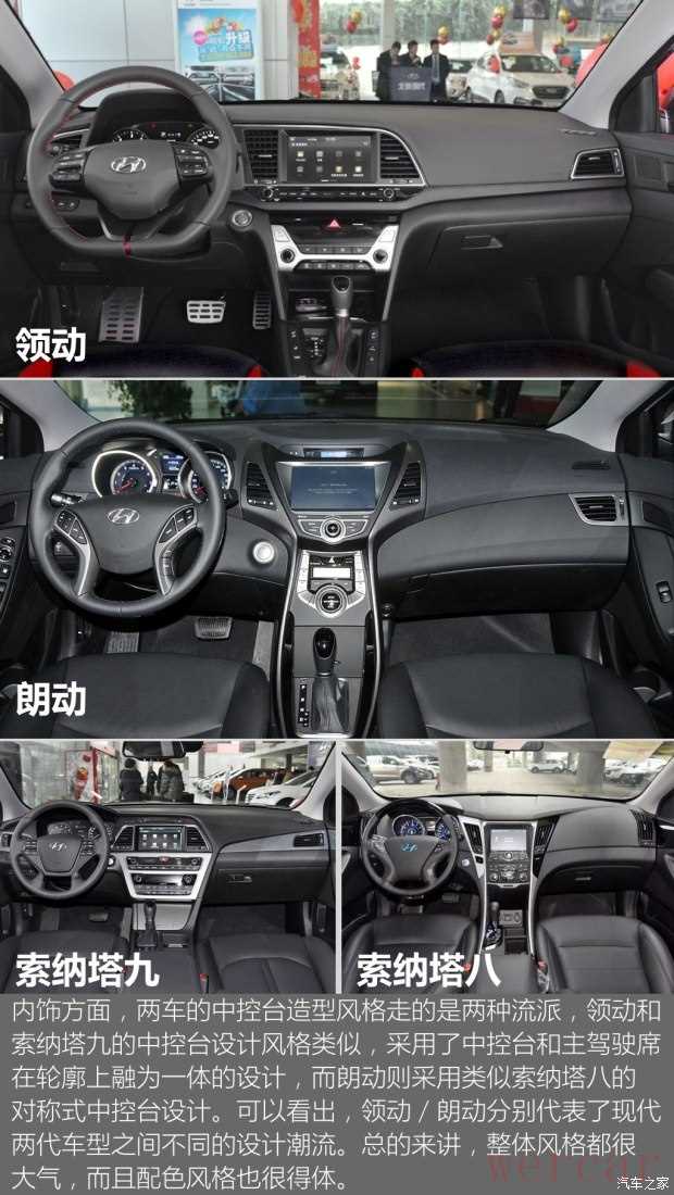同这两款车在外观部分的设计存在差异一样,两款车的内饰风格也有明显区别。领动的中控面板则完全向其“大哥”索纳塔9看齐。朗动则注重横向空间感的营造,给人感觉看起来比较宽大。