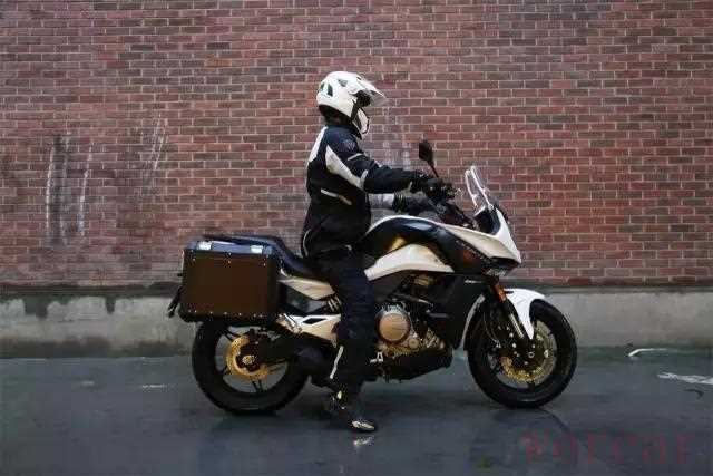 考虑到长途因素,650MT的油箱加大到18L,续航里程比650NK也有所增加,厂家表示能达到400km的续航里程。一体式车座设计有利于长途旅行的舒适性,厂家提供高座版(840mm)和低座版(820mm)两个版本供不同需求的车友选择。我们这次拿到的是低座版,下面是实车座高示范,大家可以参考一下。
