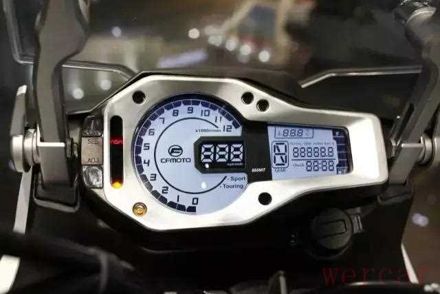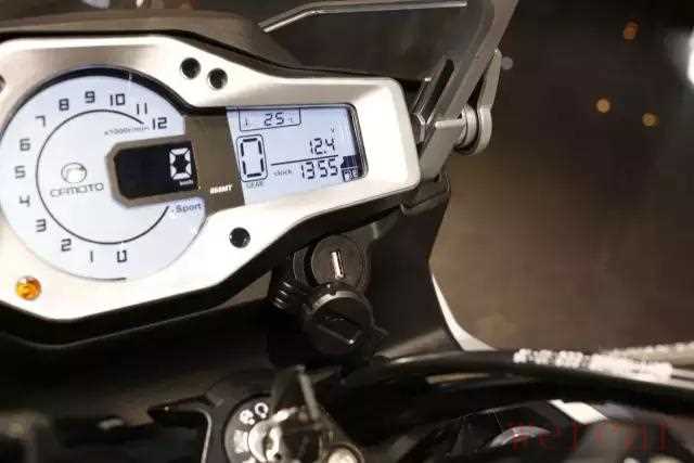 仪表盘的是量产车的一大亮点。650MT在摩博会发布的时候很多人都吐槽仪表,觉得不好看,而这次量产版的仪表加上了银色的装饰框和背光之后,立马提升了一个档次,而且仪表下面的USB接口也很贴心。这款全液晶仪表的功能并不算多,但十分清晰,转速、时速、里程、燃油量、挡显、水温一目了然,同时还有电压显示和8级背光可调,如果能加入油耗的话,对于一款长途休旅车就再好不过了。