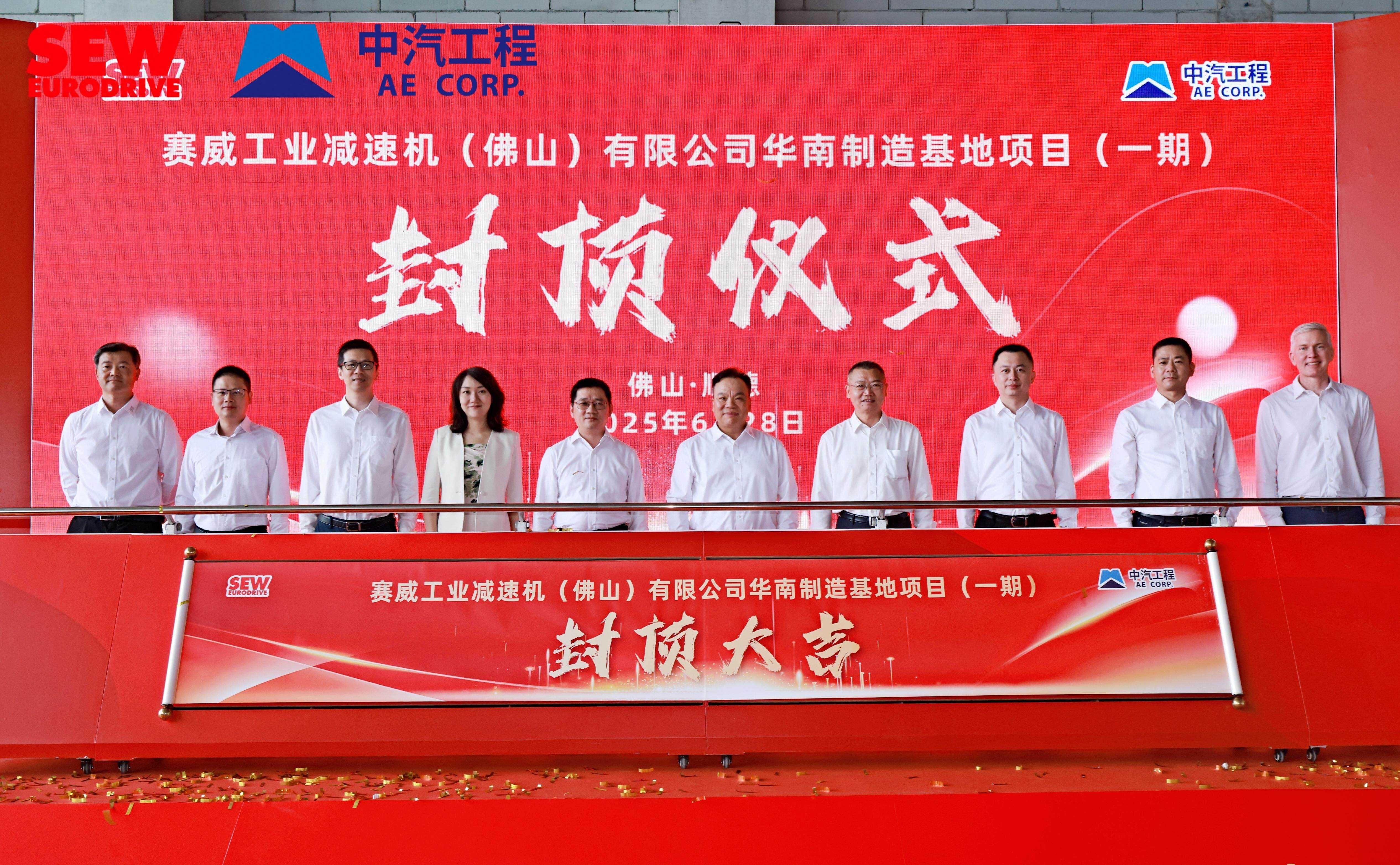 6月28日,“全球传动领域先驱”德国SEW集团赛威工业减速机(佛山)有限公司华南制造基地(一期)建设工程举行封顶仪式。