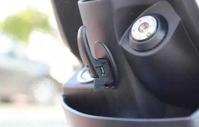 电门锁与 油箱盖相互对称,这运用了光阳专利磁力防盗技术的钥匙孔周围是两圈注释,说明着这个锁的用法以及用途 。中间的行李挂钩也是内藏玄机,隐藏了一个USB的充电接口。