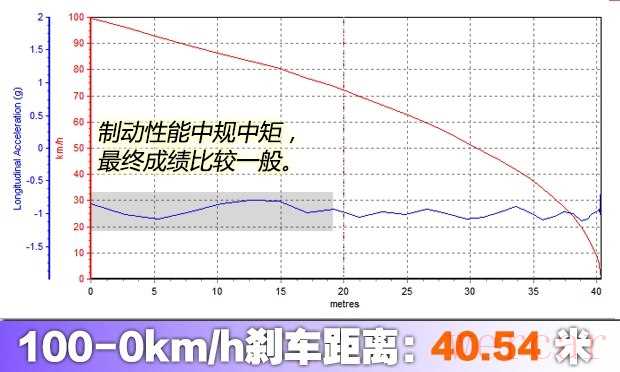 制动测试最终成绩为40.56米,相比1.4T车型的40.15米差距不大,考虑到轮胎更窄的缘故(此前测试车型配备225mm宽度轮胎),刹车距离没有变长太多也算是值得欣慰了,表现属于合格范畴。不过考虑到此前我的同事曾经在湿地踩出了37.04米的极佳成绩,或许测试环境等外界因素对最终成绩产生了不小的影响。