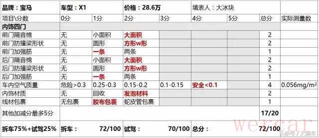 宝马X1内饰拆车评分
