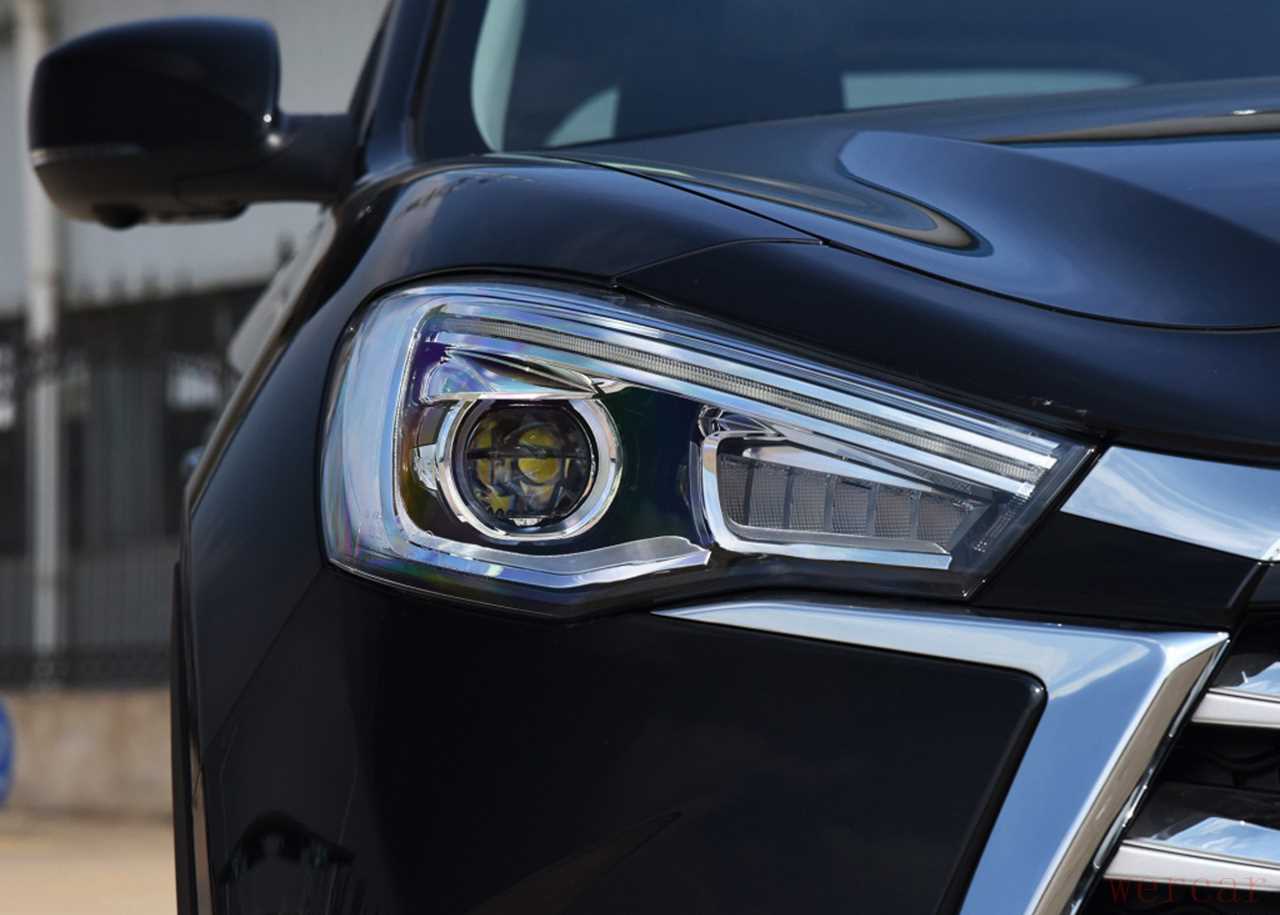 新车外观看起来帅气,前脸上,中网内部采用了一个横向的镀铬条设计,看起来十分的帅气,而且在内部还加入了网状结构,看起啦也十分精致。左右两侧的车灯设计成水滴状,而且亮起来还能够提供不错的光源。在车头的下方设计有形状别致的雾灯,能够帮助它应对各种恶劣的天气。前包围部分加入黑色的护板,保证了安全性能,整个车头看起来十分大气。