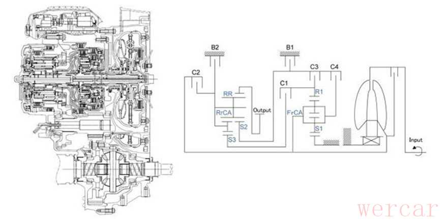 (爱信6AT变速器)那么爱信8AT(AWF8)是如何实现在6AT的基础上增加两个挡位的呢?