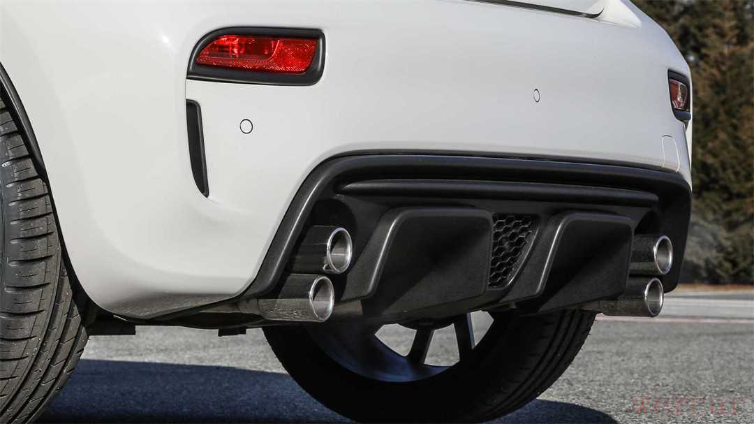 来到尾部,奇特的敞篷机构加上小巧的车身布局,看起来十分的呆萌,但它双边双出的排气布局又暴露了它狂野的一面。