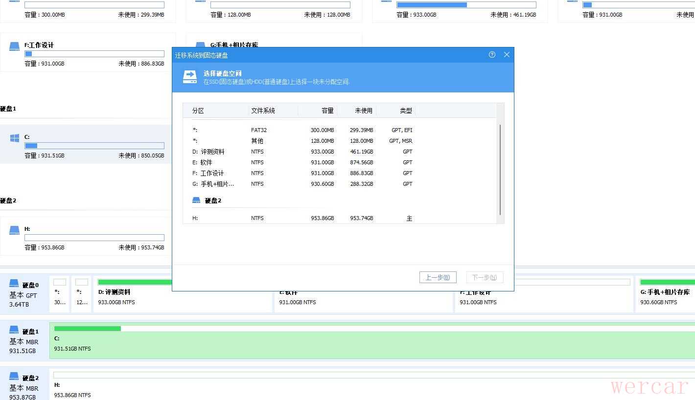 进入下一步后,选择需要迁移系统的新盘,直接选择最下面的aigo固态硬盘P3000即可!