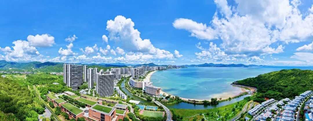 岸边,林立的酒店、公寓错落有致,现代都市的蓬勃活力与自然美景和谐相融。不远处,连绵的青山如黛,静默地守护着这片海湾,为小径湾增添了几分沉稳与壮阔。晓联河碧道从酒店门前绕过,串联沙滩浴场,形成一幅山水相连的美妙生态画卷。