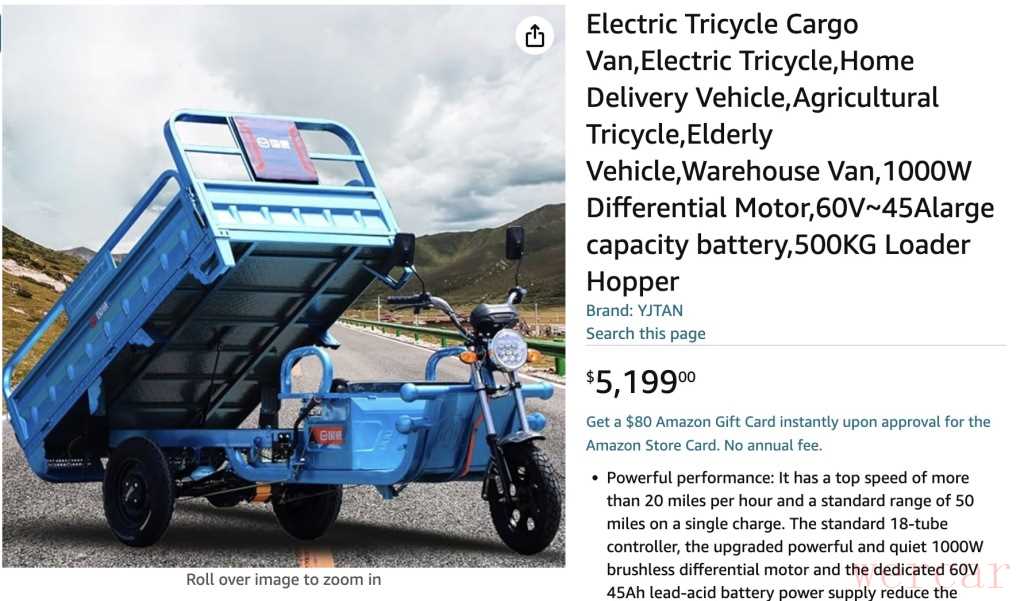 亚马逊平台上售价为5000多美元的三蹦子