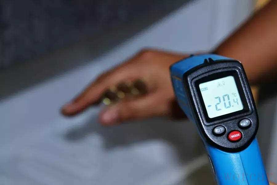 我们通过红外线温度仪可以看到此时冷藏的温度为-20°C,由此模拟极低温度下机油的流动情况