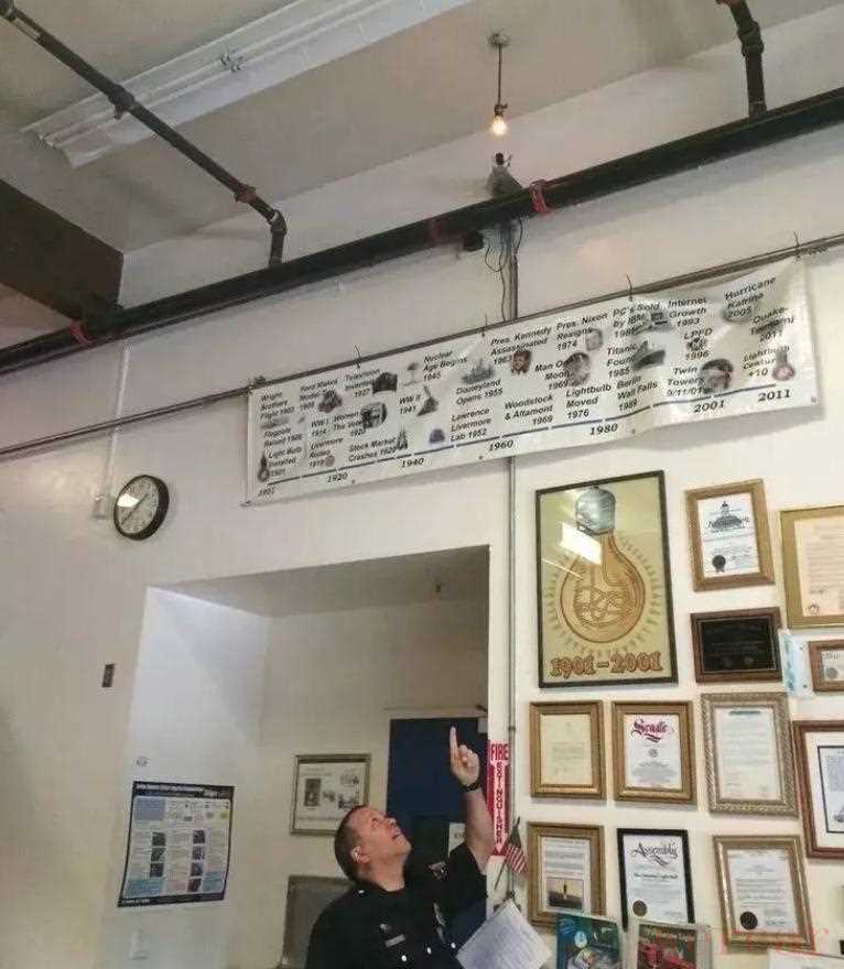 这个灯泡是在1901年点亮的,到今天也马上120年了,一直没有熄灭,叫他神灯不为过,其实在那个时候这种灯泡很常见,生产出来就是为了持续性,这个灯在美国加利福尼亚州东部沙漠的一个小镇的消防站车库里。
