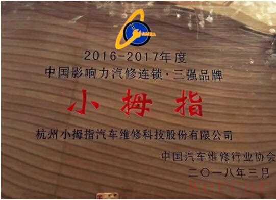图一:小拇指快修荣获中国汽车维修行业协会“中国影响力汽修连锁-三强品牌”奖
