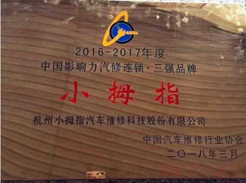 图一:小拇指快修荣获中国汽车维修行业协会“中国影响力汽修连锁-三强品牌”奖