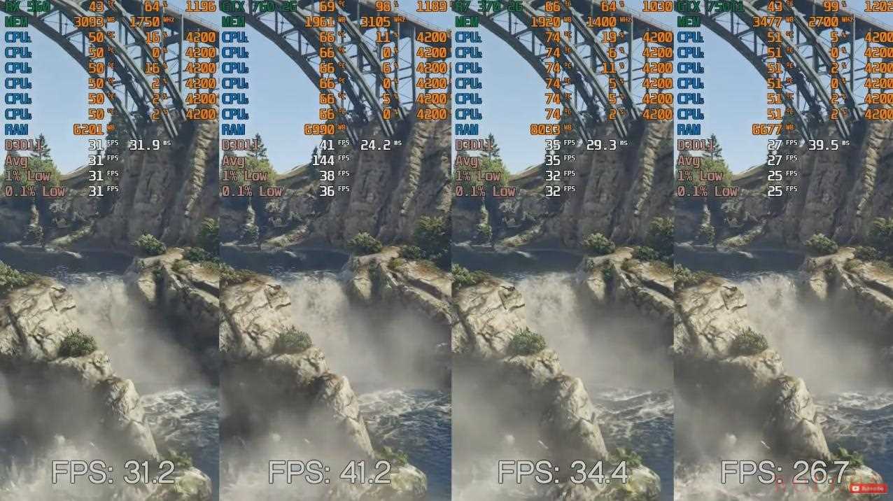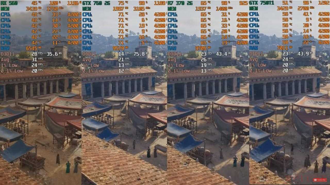 从上面这三款游戏大家可以看出,RX560的实际性能要明显强于GTX750TI,综合优势在20%左右,且由于是4G运存,在玩现阶段的游戏中更不容易出现爆显存的问题,与之相对的,GTX760的性能虽然更强大,但是由于显存的问题,很容易出现爆显存的问题,从而出现帧数剧烈下降的现象。