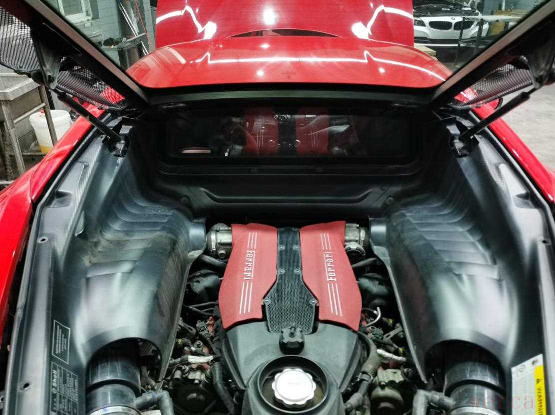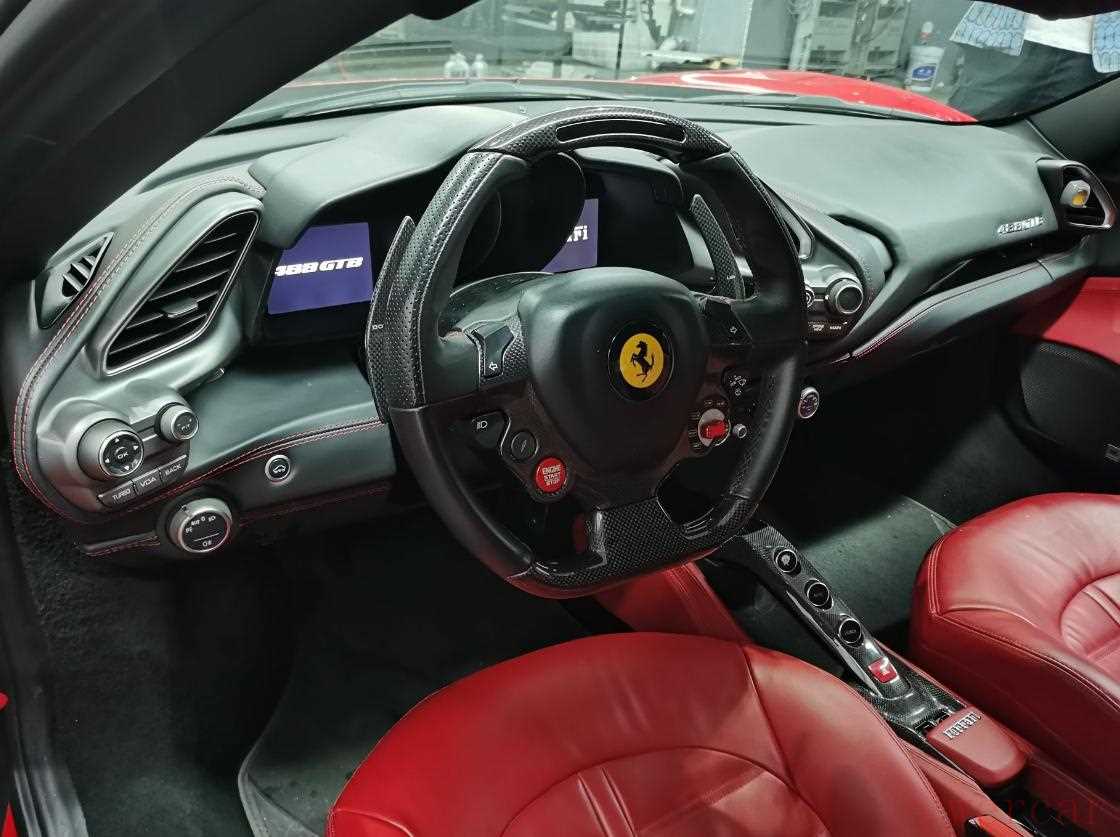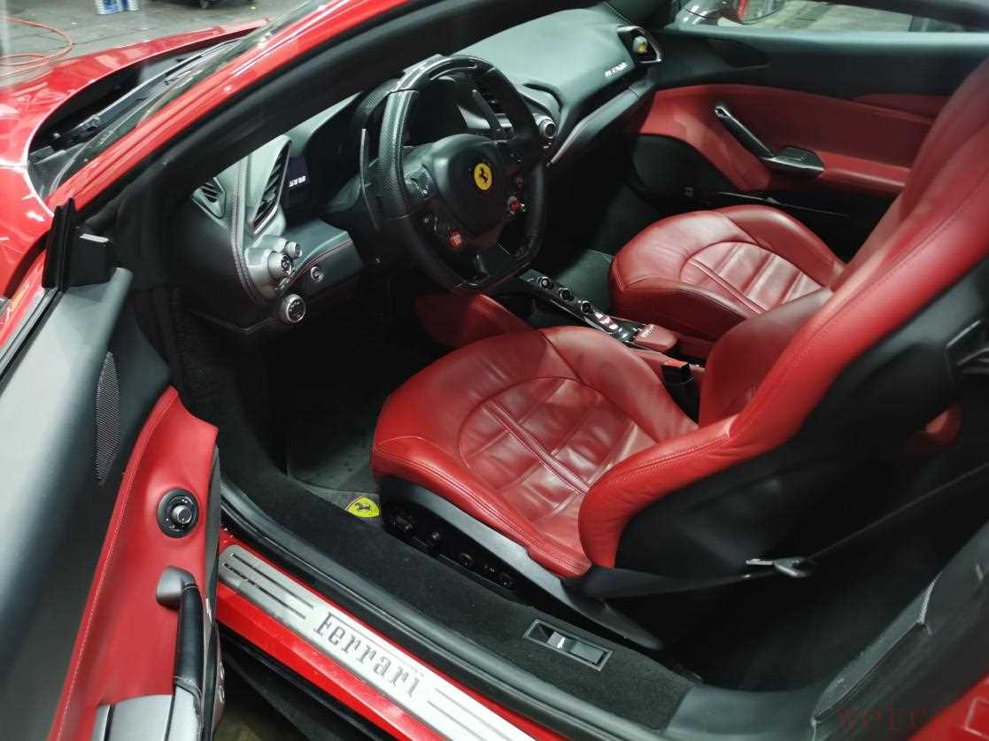正时侧盖一圈螺丝也都是没有拆卸的,488这款车一般正常使用,非暴力驾驶或者人为原因损伤,一般里程不高的情况下很少见发动机大修的,质量相当不错,这也是为什么它保值的原因。目前发动机上部检查情况良好,稍后底盘需要检查一下底部油底壳等位置。下面来看看内饰。