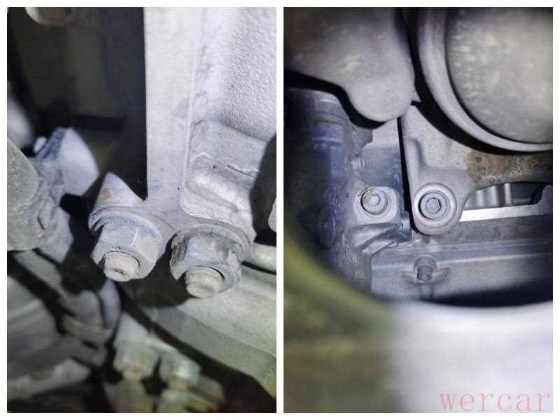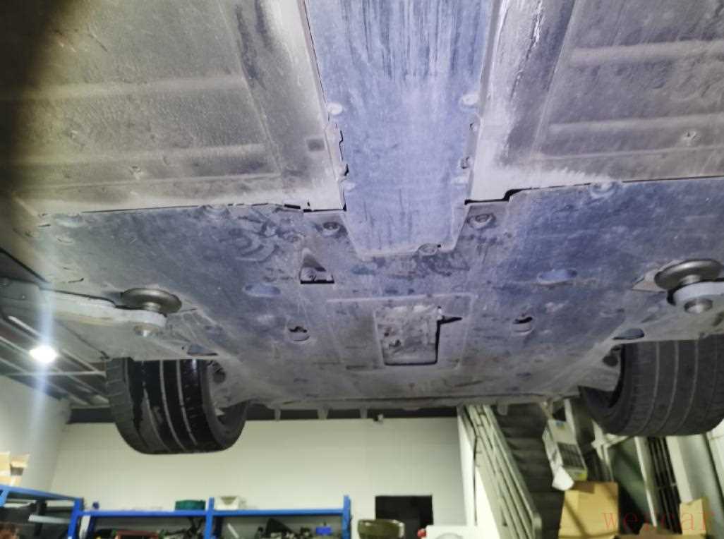从底盘检查发动机底部,可以看到油底壳等漏油大户目前情况还比较好,没有机油满天飞的状况,机脚等固定螺丝也没有拆装痕迹,表现非常不错。