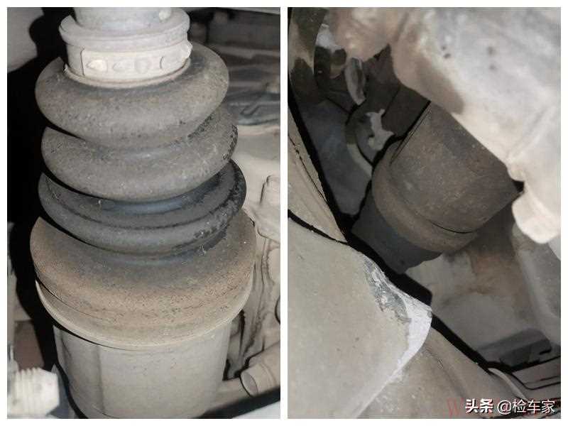 前面两个半轴渗油,橡胶材质的胶套开始老化密封不严了,所以买二手车一定要上架子看下底盘,因为好多东西不是说你趴到地上就能看到的。