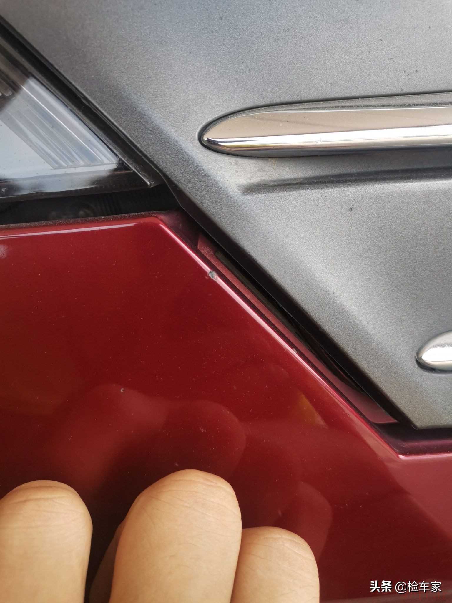八年多的车,外观看起来还是锃光瓦亮,漆面保护的还不错。不过难免有修复的地方,前后保险杠就是最容易刮蹭的部位,毕竟原厂设计都是塑料件。这不前雾灯罩旁边就发现了明显的漆雾,还有一个小磕痕掉漆。