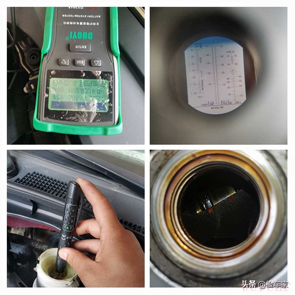 继续检查全车油水和电瓶,机油成色还比较清亮,估计才换了没多长时间;防冻液的冰点没问题,不过份量有点缺,需要及时添加,以免发动机高温;刹车油暂时检测不了,因为上边的盖板不允许拆卸;电瓶有过更换,目前状态良好。