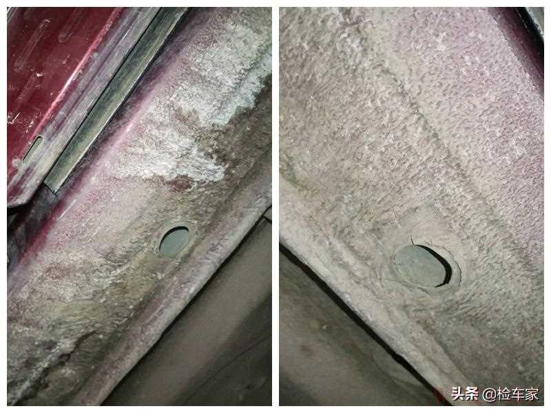 不过拆掉门槛饰条之后,春哥看到了内饰进水的证据,门槛表面脏污起碱,而且底板水堵缺失了,但是车里面并没有大面积过水的痕迹,估计是洗内饰进的水,没等晾干就装上了门槛饰条,长时间焖干了。