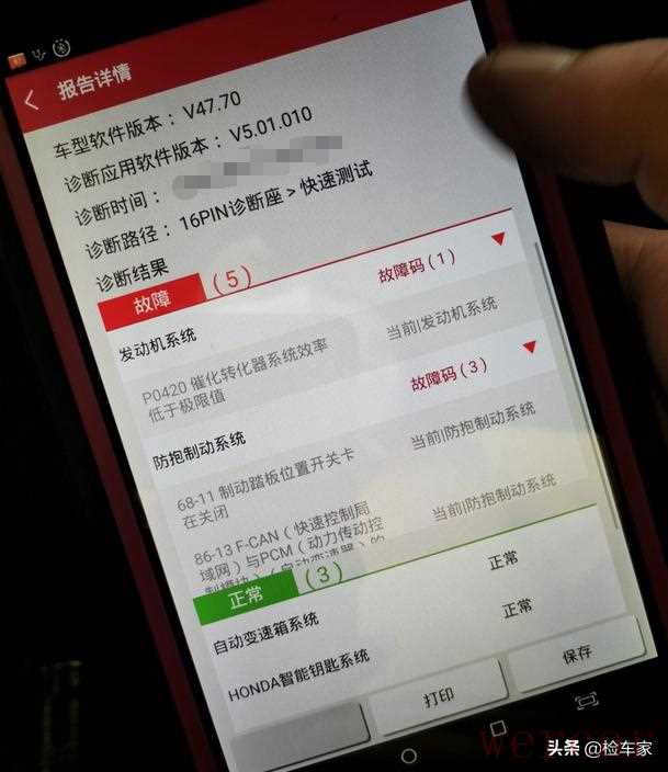 OBD电脑读出来5个故障码,不过都是电瓶亏电引起的,无关大碍,不影响正常驾驶,但是要多注意仪表盘上的故障报警,仪表盘的灯亮了,就要第一时间去维修处理。