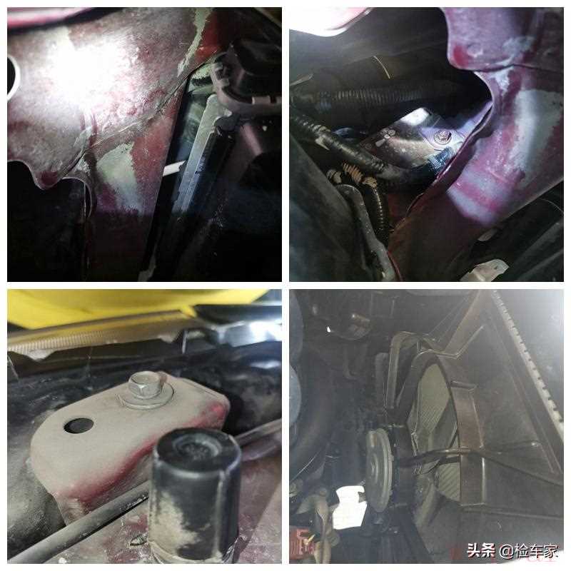 正前方向,水箱框架是好的,但是前防撞梁和两个大灯以及散热器风扇拆装了,联想到前保险杠和中网的更换,可以推断车头前方有过小碰撞,且并不严重,没有伤及水箱框架,更别说纵梁和发动机。