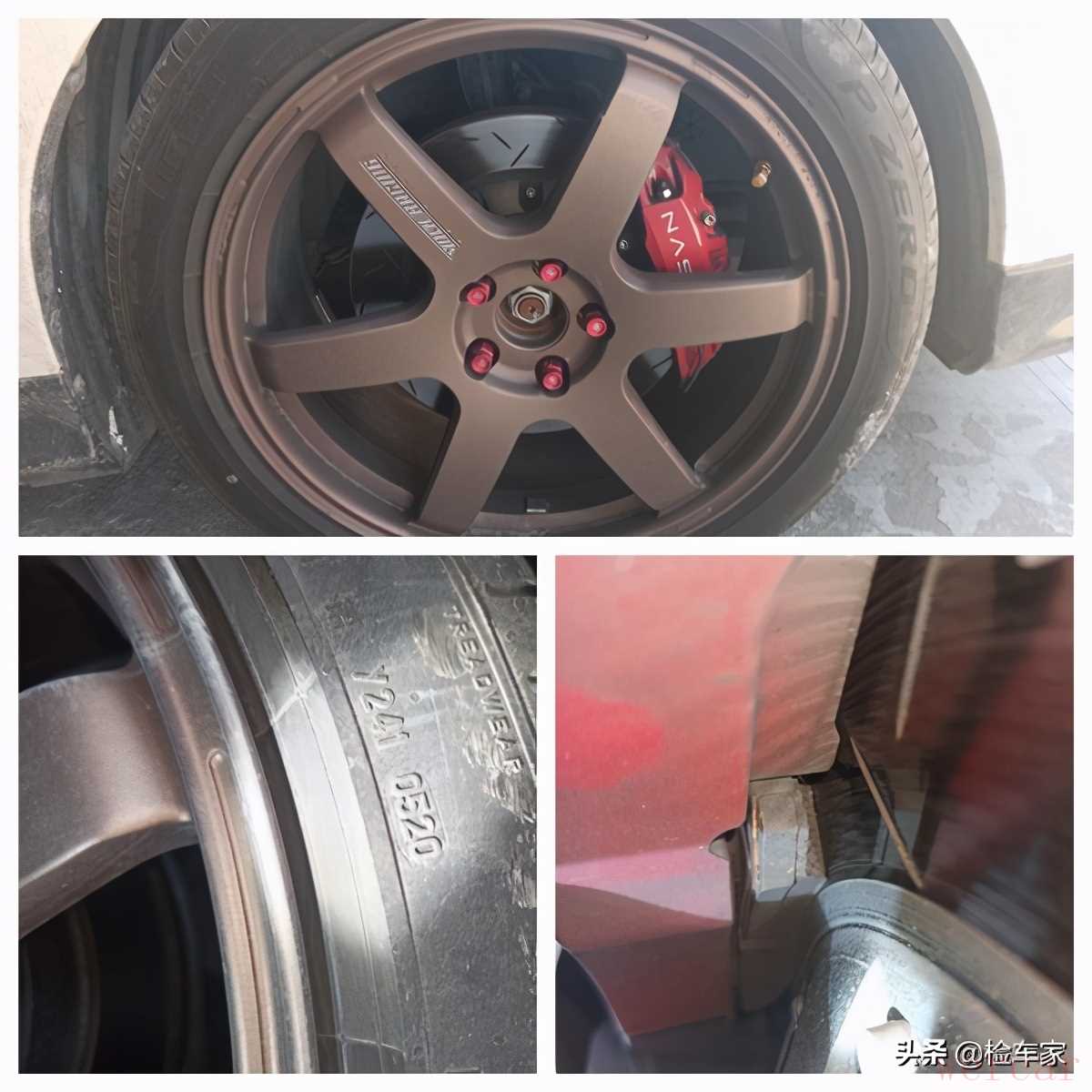 最后检测轮毂轮胎刹车片等部件,改装的轮毂并无明显划痕剐蹭,轮胎是刚换不久的,因为都是2020年年初出厂的轮胎,刹车片也是刚换不久厚度挺厚的,都能正常使用,不过过户的话,估计得先还原或者找万能的黄牛了~检测到这里也就差不多技术了,随后和客户汇报了完整车况,客户大哥还是很喜欢车上的改装件的:全车贴膜,改装音响,减震轮胎轮毂排气刹车卡钳,唯一的问题就是有调表!