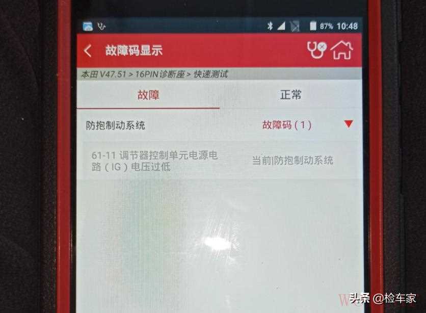 接下来读取车身系统故障码,发现防抱死系统存在一个电压过低的故障码,而仪表却没有故障灯,等会路试的时候得试一下ABS能不能正常介入。静态检测到这里也就结束了,和客户说了下调表的情况,客户大哥此时也是有点犹豫:除了调表,其它倒没什么问题,不过调表也太可恶了,十来万公里调成4万多!最后客户大哥表示还是去看一下底盘吧,看下底盘有没有漏油或者什么问题。接下来是路试,出于安全考虑,就不给大家拍照了哈,大家见谅一下。