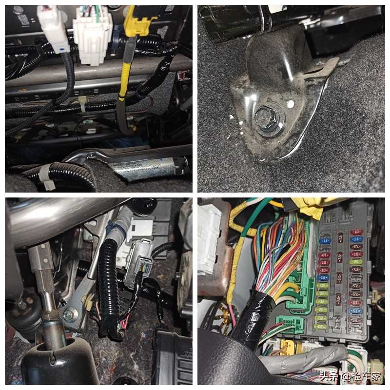 然后我检查到座椅固定螺丝无拆卸痕迹,座椅底部骨架无生锈;转向柱与刹车踏板底部无生锈;保险丝盒无泥沙脏污,线束插头内部无锈蚀发霉,结合机舱等部件基本上可以排除车辆泡水嫌疑。
