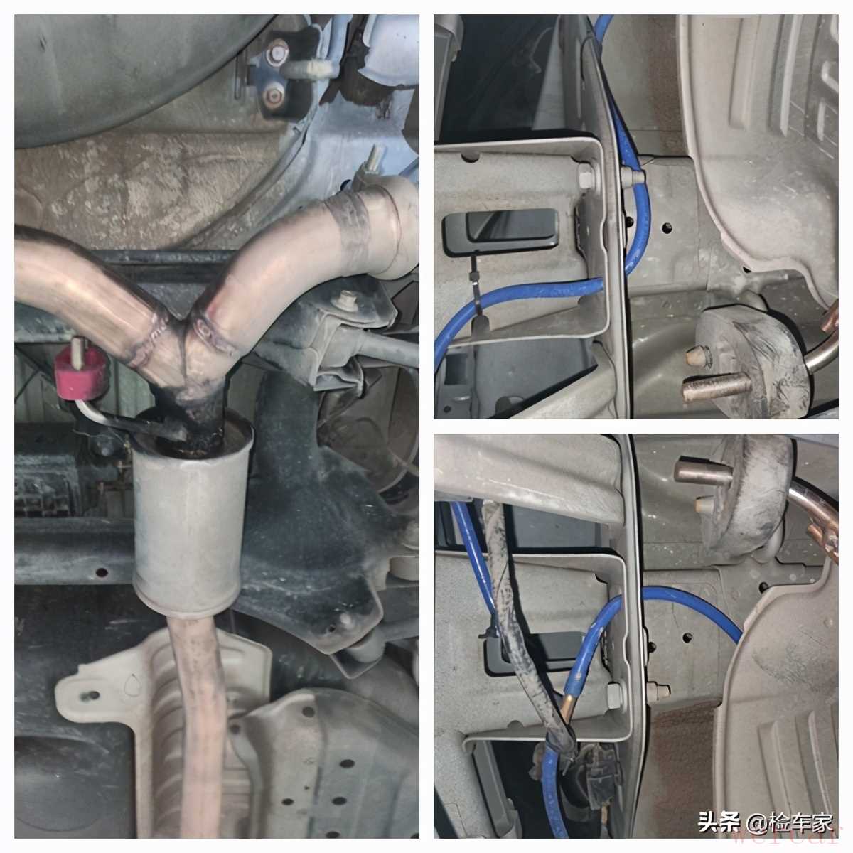 并且车辆排气管也改装过,跟我路试时猜测的一样;然后检查到两侧后纵梁无变形修复,后防撞梁固定螺丝无拆卸痕迹,基本可以排除车辆严重追尾。