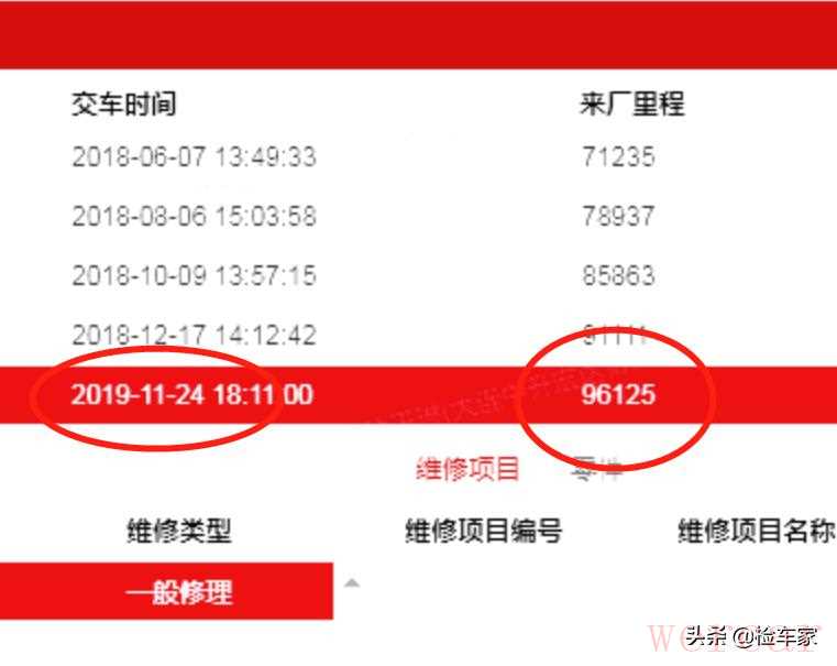 此时后台小姐姐给我发来了这台车的维修保养记录,发现19年底就跑了将近十万公里了,现在10万公里肯定少不了的了。果然是有调表,而且超过了对半调!说实话,4年半的车跑10万公里其实真不算多,你调这几万公里又能多卖多少钱呢?先记下吧,一会儿告诉客户。不过我是再一次对原车主的驾驶技术表示佩服啊,10万公里只有两处补漆,老司机中的战斗机~