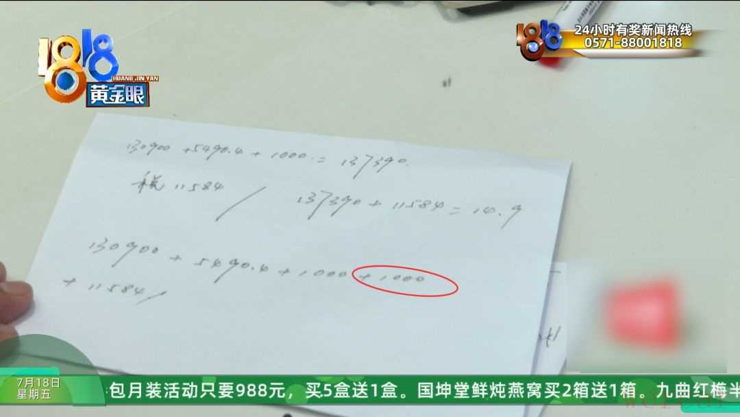 记者:你再跟她解释一下为什么。她的意思就是说,并没有让你们给她上牌,但是列出的收费项目,有一项是上牌费一千元。