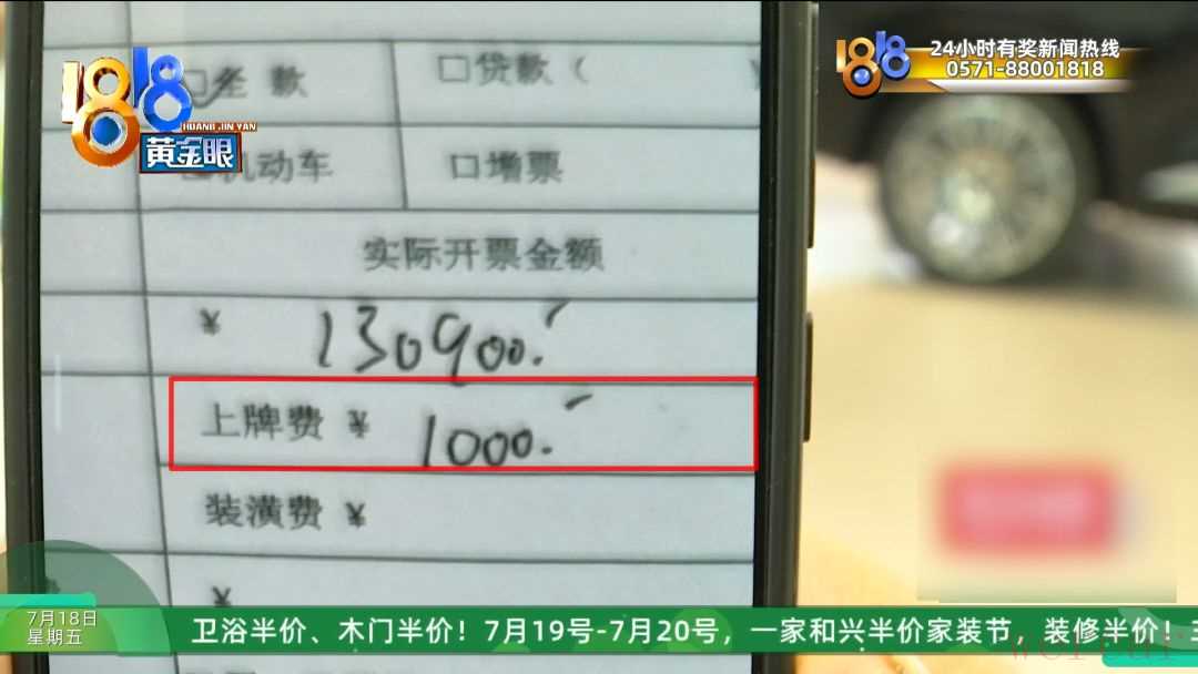 浙江星瑞行4S店销售部 叶经理:我们自己做账,从车价里面挪一千块钱出来,作为上牌这一项。
