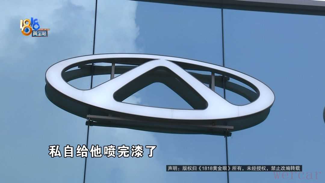 奇瑞杭州金诚瑞行门店 销售人员:我没看到,他已经让售后人员私自给他喷完漆了。