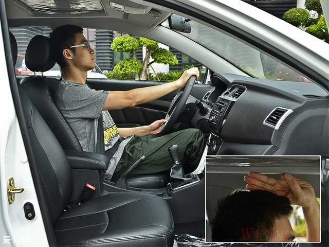 体验者身高180cm,在将座椅降至最低并调整好坐姿后,头部有三指左右的剩余空间。