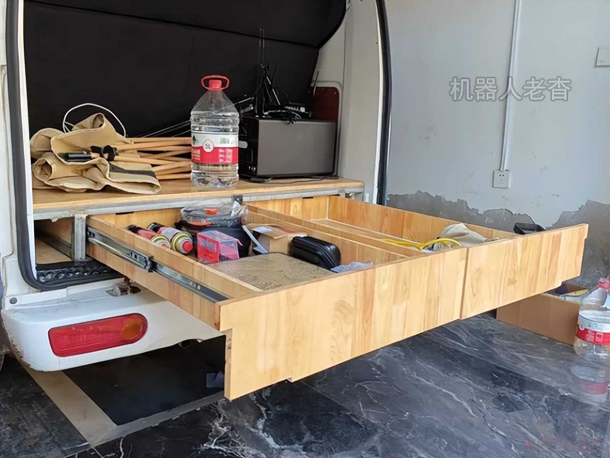 打开上掀式尾门,尾部是两个后置外拉抽屉,可放简易炊具,打造迷你户外厨房。