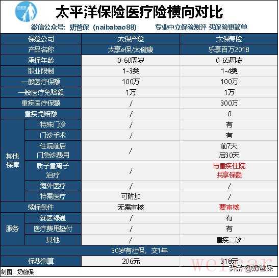 如果追求保障全面:太保寿险乐享百万2018含有质子重离子治疗、就医绿道、300万重疾医疗保额,但续保需要审核,如果身体状况变化可能就没法续保了。