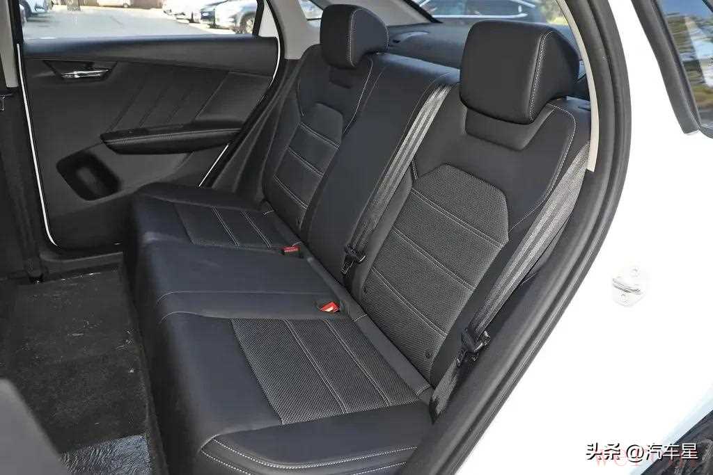 整车尺寸长宽高分别为:4450mm、1760mm、1520mm,轴距为2610mm,定位于紧凑型轿车,座椅采用仿皮材质,主副驾驶座椅整体支持前后移动和靠背角度调节功能,前排座椅支持加热和通风功能,后排座椅支持整排放倒,朋友的身高为1米72,不过体重偏胖,以朋友身高为例坐在后排腿部剩余空间还有两拳左右,头部剩余空间还有四指左右,表现还不错,日常使用不会显得局促。
