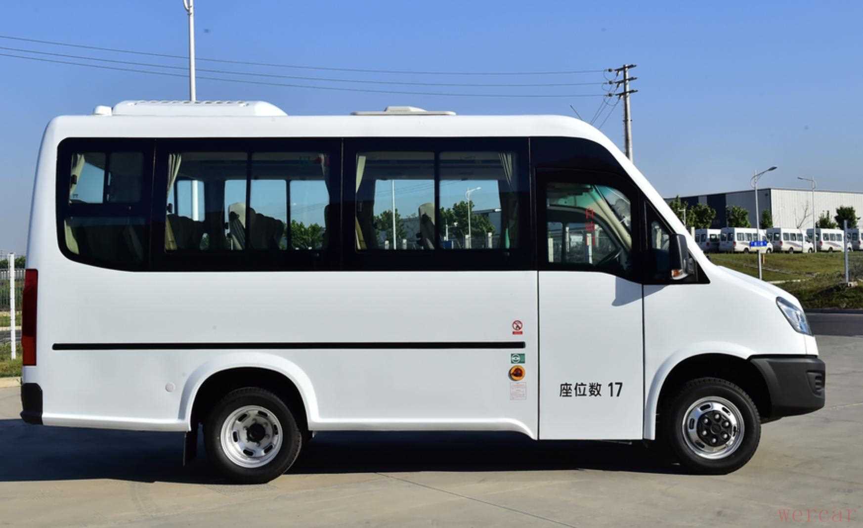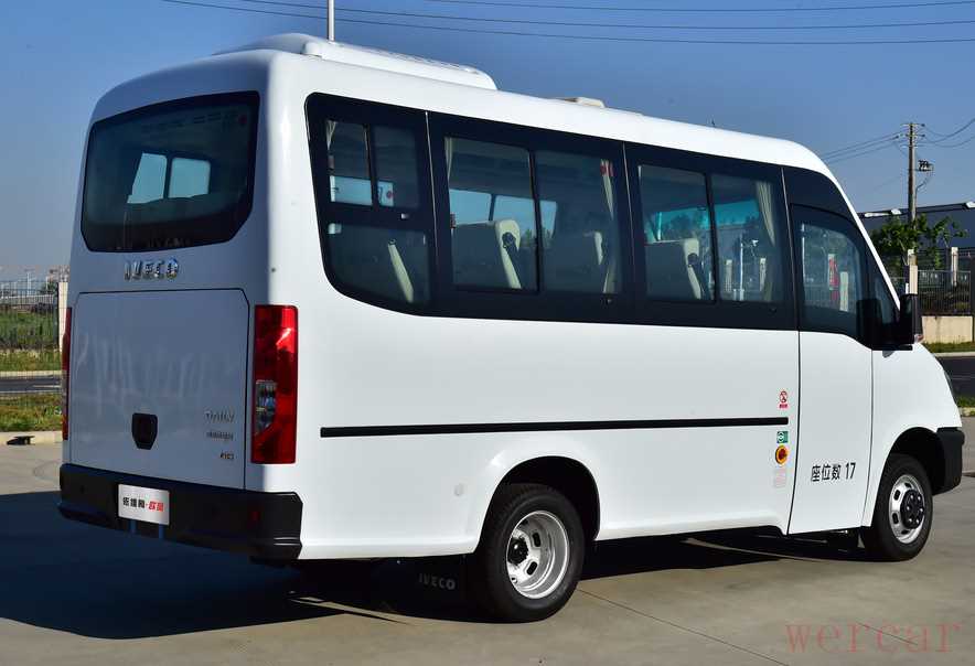 与依维柯旗下其他轻客车型有所不同,欧风属于一款客运用途的轻客产品,可提供17座和20座两种座位数量。其中,17座车型车身长宽高分别为5995/2080/2920毫米,20座车型长宽高分别为7145/2080/2920毫米,两款车型长度相差1150毫米,轴距均为3300毫米。