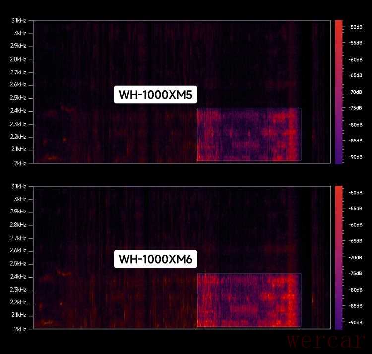 结合声谱图和demo听感,我们可以发现:XM6的低频表现得更加自然和有层次感,不像XM5那样强调力量感,而是以更有弹性和节奏感的方式呈现低频,听起来更通透、不沉闷。