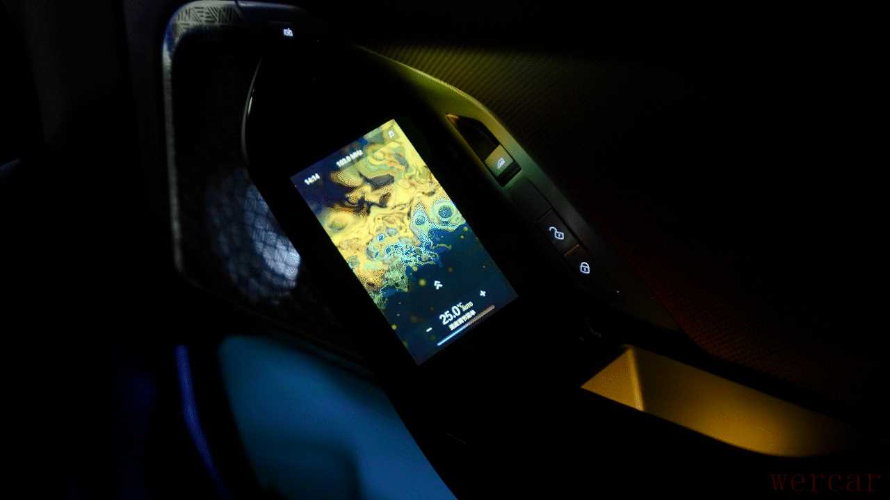 言归正传。除了后排大屏外,后排左右门板内侧也各有一块5.5英寸扶手屏。通过这块屏幕,用户可调节后排空调、座椅角度、按摩等舒适性配置。当然,上代7系就具备的“国王模式”(这个名字是笔者自己起的)依旧得到了延续。只要副驾没人,i7的后排右侧座位就可以一键调节到平躺模式,给人以足够的放松。