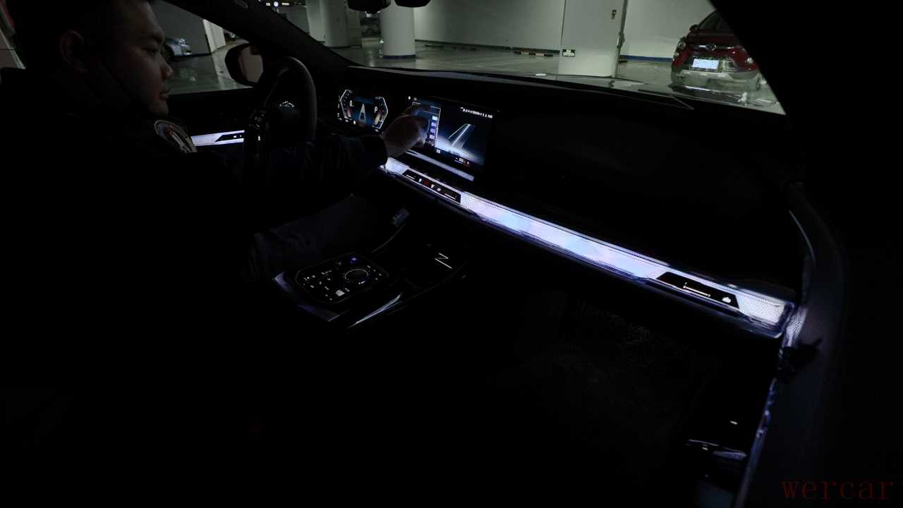 在白天的试驾中,我们尽量找了个地下车库来呈现i7的灯光。但显然,效果真的不如实车。