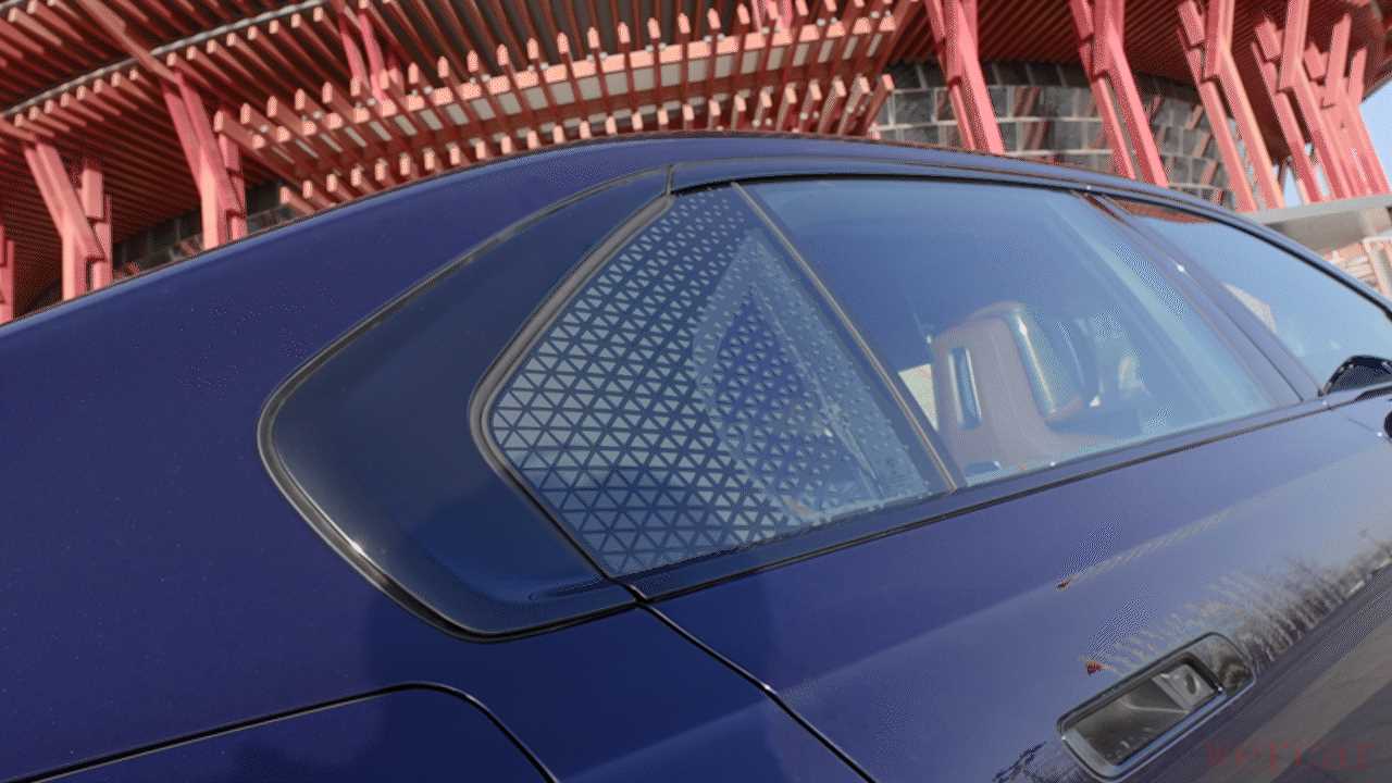 毕竟,让一款车看上去贵,是D级轿车能成功的首要条件。游艇般的姿态,视觉上更加厚重的车身造型,配合值得玩味的细节,成为了i7“大气且贵”的必备的元素。相对前一代7系更加高耸的车尾,将i7前脸并贯穿车身的大气做了延续。而在车辆的外观细节部分,i7 D的柱采用了中国花窗的元素则带出了优雅的质感。同时,尾灯罩上也采用了类似的设计。