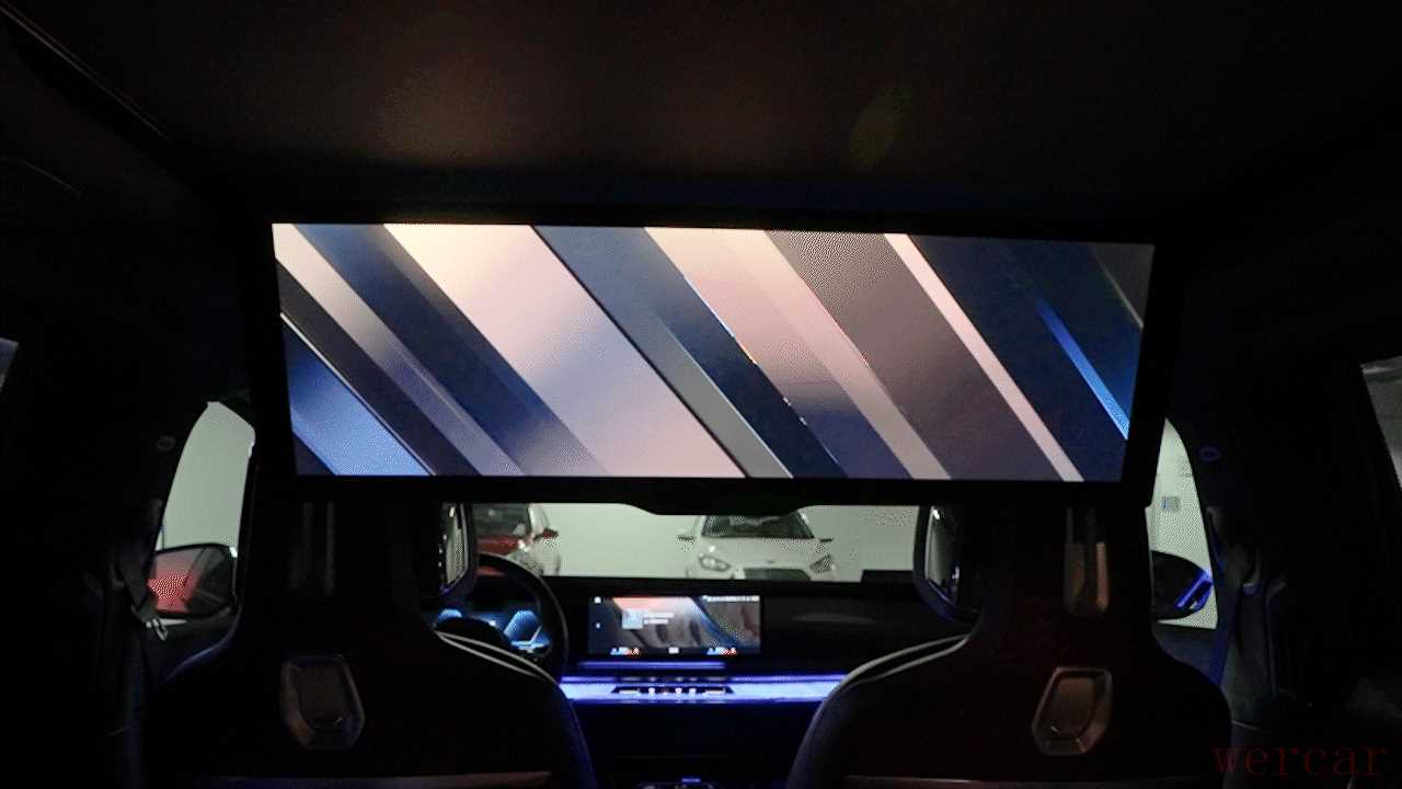 宝马给出的方案是:更多的屏和更多的光。首先,是大家印象最深刻的31英寸8K分辨率的超大后排屏幕。