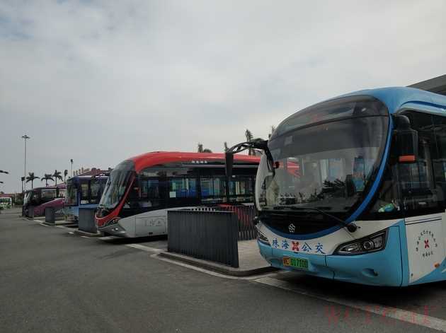 珠海城轨站,与澳门地区隔江相望。珠海站前的公交车站有超过10个线路的公交车,它们从珠海站出发,开往珠海市的各个角落。记者了解到,这些公交车隶属于珠海公交集团。今年来,珠海公交集团加大了新能源公交车的投放力度。