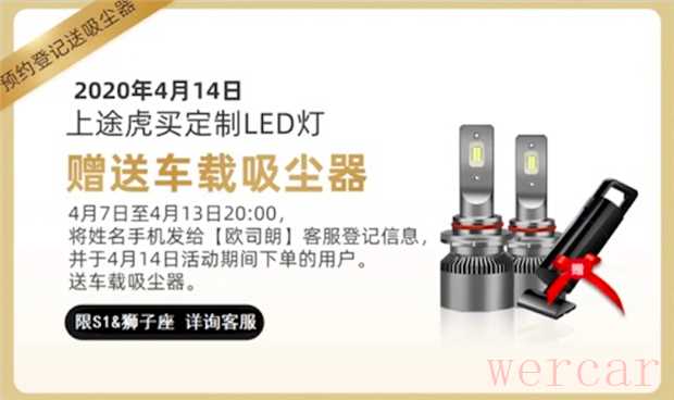 2020年4月14日,欧司朗途虎定制S1 LED车灯将正式上线途虎养车平台,联合首发价为398元,并且免费安装还送油卡。4月7日至4月13日20:00,预约登记并于4月14日成功下单用户,将获得车载吸尘器一份。(新民网出于传递汽车资讯的目的刊登此文,不代表本网观点)