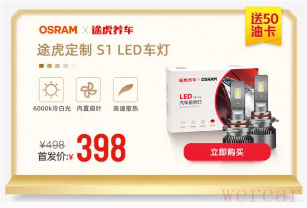 全球汽车照明领导品牌德国OSRAM欧司朗携手中国领先的汽车养护品牌途虎养车,于4月14日联合首发欧司朗X途虎养车定制S1 LED车灯,德国百年品牌OSRAM欧司朗专业的LED车灯科技和途虎养车靠谱的汽修养护实力,强强联合分分钟解决你的车灯问题。